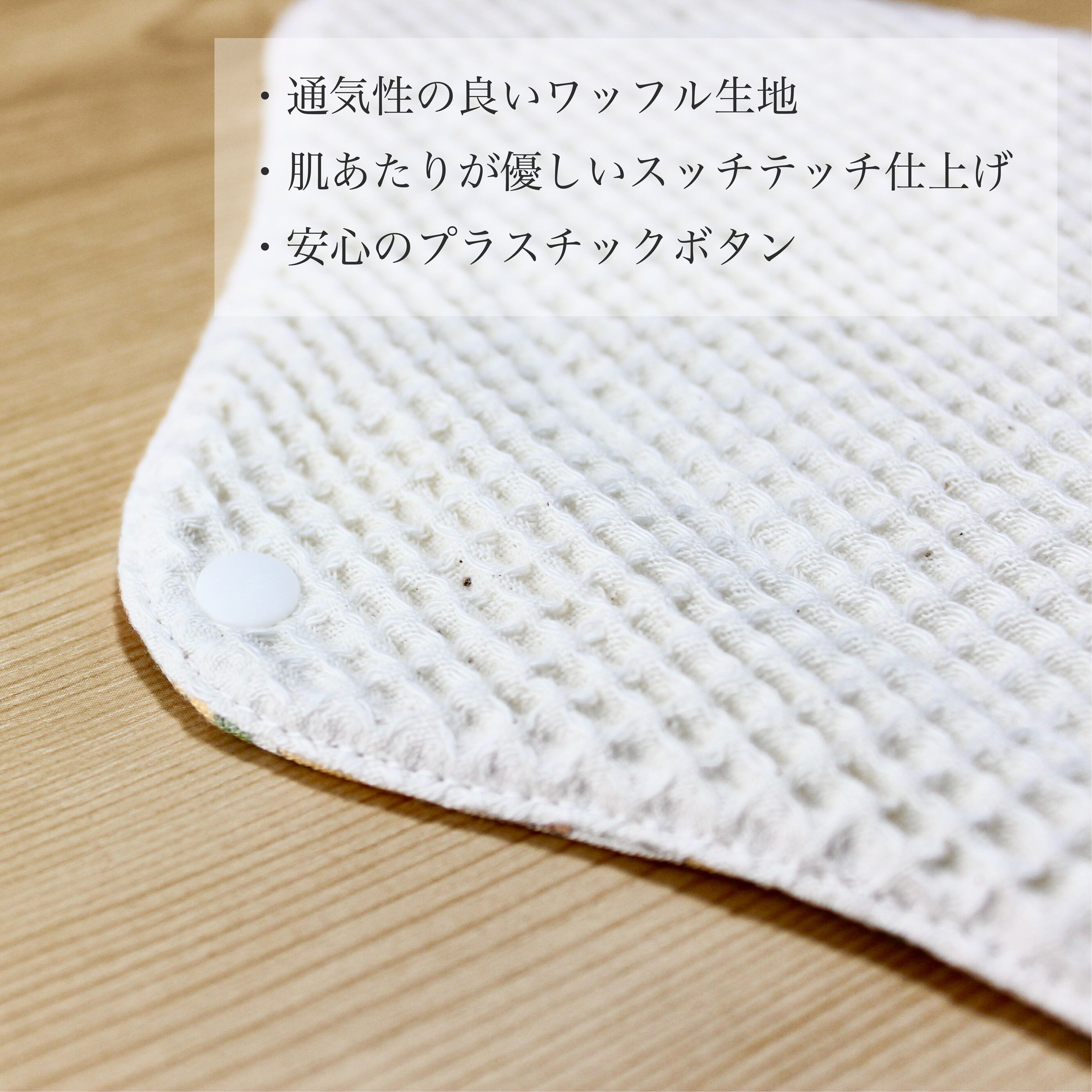 肌に触れる部分は、ふんわりやさしいオーガニックワッフルコットン。